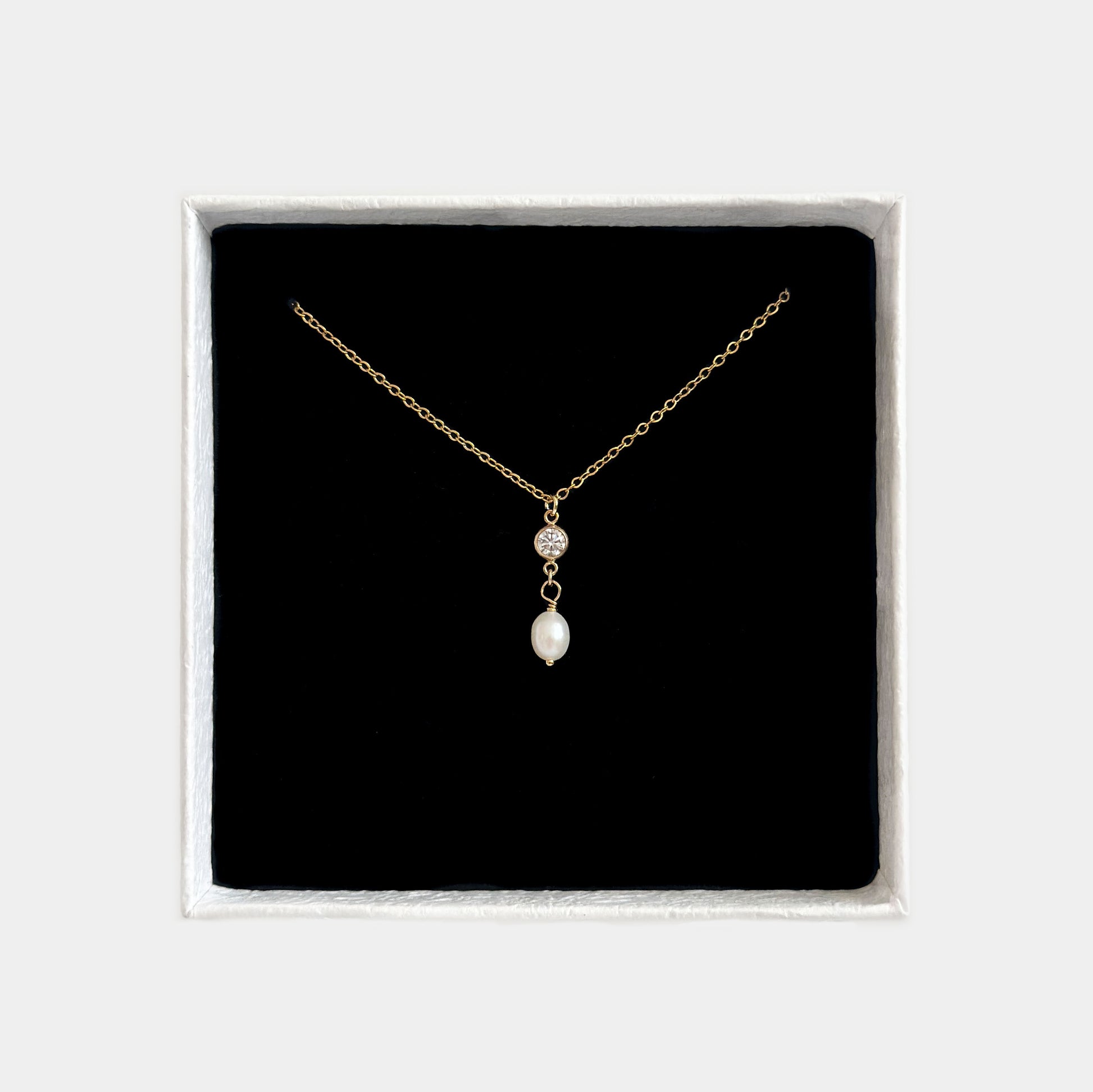 Die Elara Halskette ist eine elegante Kette aus 18K vergoldetem Edelstahl. Ein funkelnder Zirkonia und eine zarte Süßwasserperle verleihen ihr einen edlen, femininen Charakter. Ein perfektes Accessoire – sowohl für den Alltag als auch für besondere Anlässe.