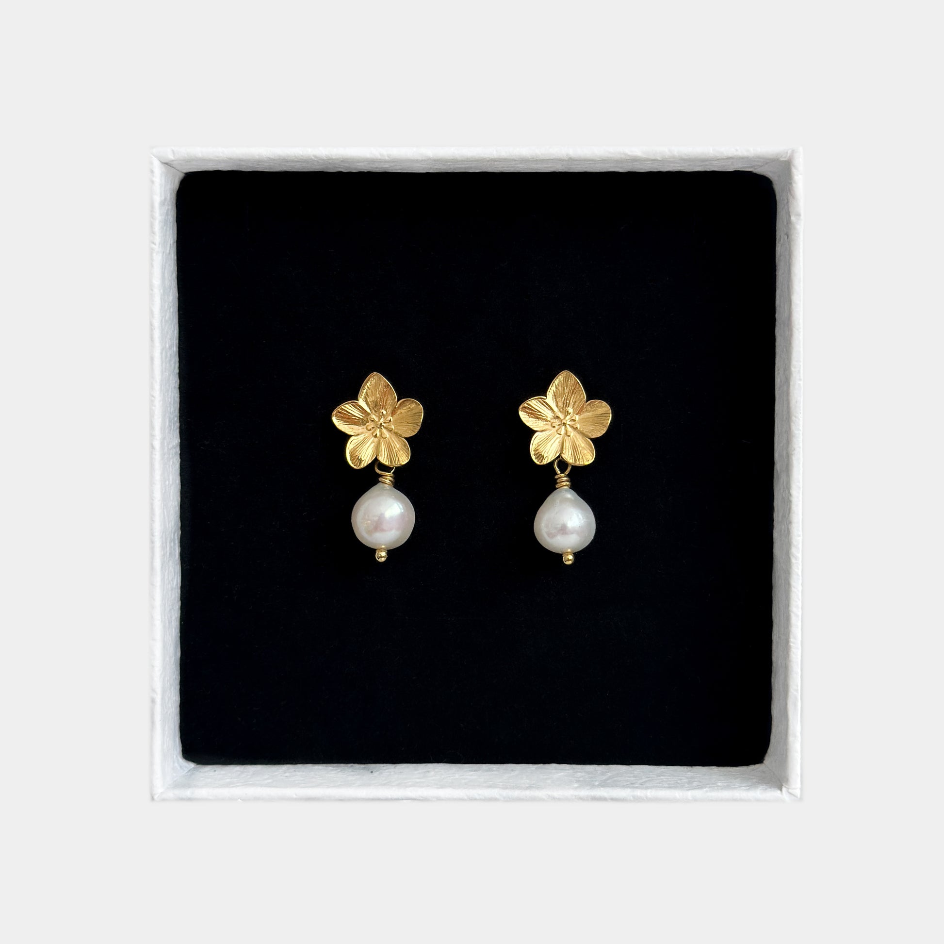 Elegante Blumen Ohrstecker aus vergoldetem Edelstahl, veredelt mit schimmernden Süßwasserperlen. Diese Ohrringe sind die perfekte Wahl für besondere Anlässe, romantische Abende oder als stilvolles Highlight im Alltag.